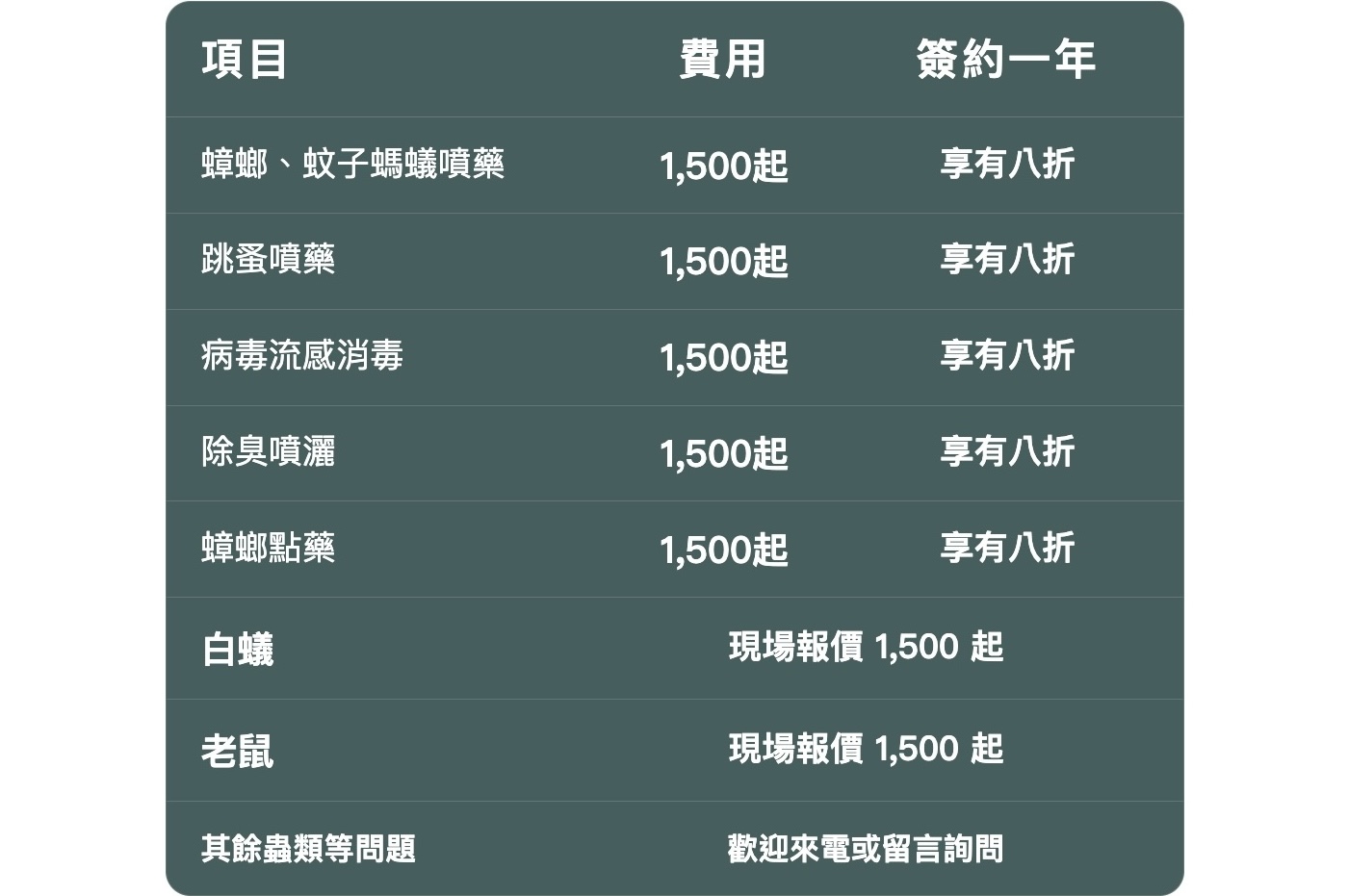 針對各類害蟲進行全面評估與源頭處理,有效驅除並建立長效防護機制,降低再度孳生風險率